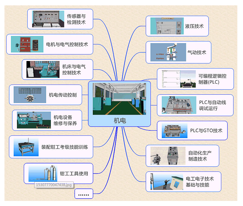 基本涵蓋了PLC與自動(dòng)線調(diào)試運(yùn)行、氣動(dòng)技術(shù)、傳感器與檢測(cè)技術(shù)、機(jī)床電氣技術(shù)控制、機(jī)電設(shè)備維護(hù)與保養(yǎng)、電機(jī)與電氣控制技術(shù)、PLC編程與應(yīng)用技術(shù)、電工電子技術(shù)基礎(chǔ)與技能、金屬加工與實(shí)訓(xùn)、液壓系統(tǒng)安裝與調(diào)試、裝配鉗工考級(jí)技能訓(xùn)練、維修電工考級(jí)技能訓(xùn)練、電氣系統(tǒng)安裝與調(diào)試、柔性生產(chǎn)線仿真、PLC與GTO技術(shù)、機(jī)械設(shè)備裝配與自動(dòng)控制所需教學(xué)實(shí)訓(xùn)仿真資源。