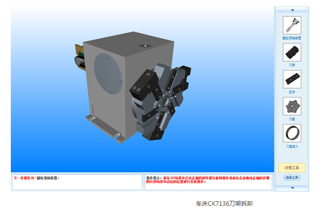拆裝: 可以對(duì)整臺(tái)機(jī)床及各部件進(jìn)行實(shí)訓(xùn)仿真拆裝,有效解決了實(shí)際操作中的不易拆卸、成本 、損耗大等一系列問題。