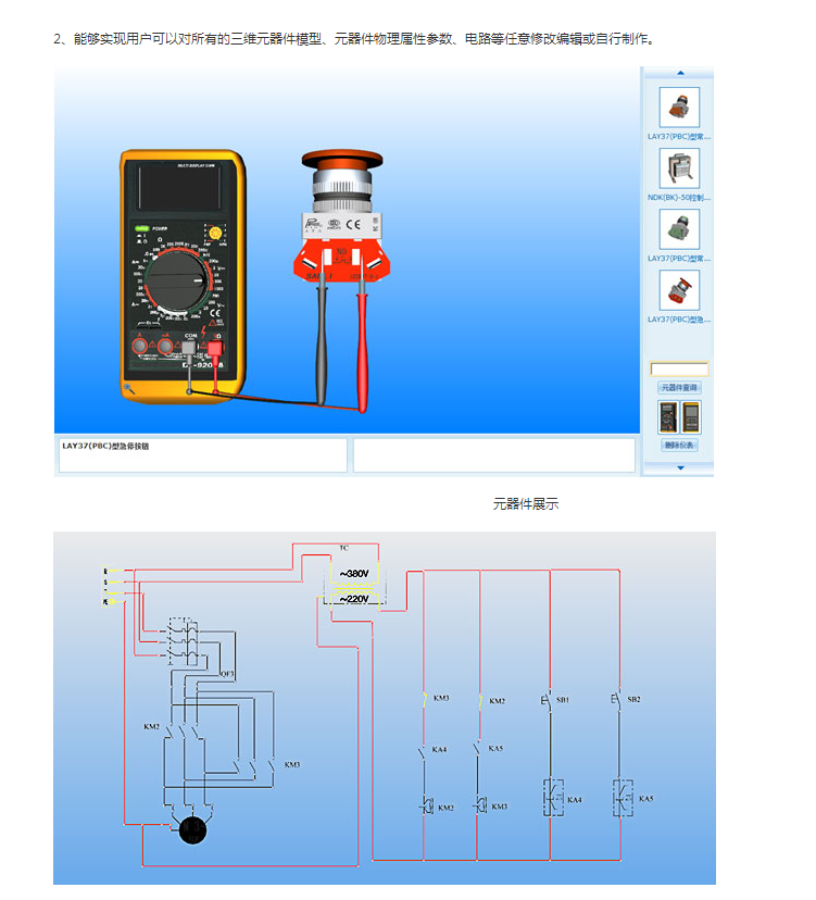 1、平臺(tái)具有虛擬仿真實(shí)訓(xùn)功能,三維虛擬仿真實(shí)驗(yàn)設(shè)備具有與真實(shí)實(shí)驗(yàn)設(shè)備完全一樣的功能,可以仿真操作、任意拆裝、任意設(shè)置故障、排除故障,所有的設(shè)備元器件及儀器儀表能夠根據(jù)其相應(yīng)的物理屬性實(shí)時(shí)做出反應(yīng)。