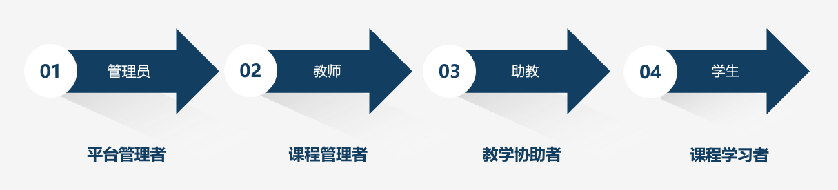 本平臺共包含4個系統(tǒng)角色,分別為管理員、教師、助教、學生。各角色之間功能權限獨立,確保可滿足教學和實訓全流程的使用需求。管理員主要進行用戶管理、實訓環(huán)境管理等。教師主要進行課程發(fā)布、課程教學、學生管理等。助教主要協(xié)助教師進行作業(yè)管理、教學進度跟蹤、成績管理等。學生主要進行課程實訓、提交作業(yè)、線上考試等。