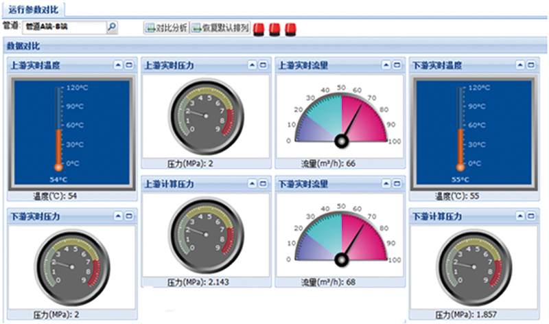 該系統(tǒng)是一個將管道數(shù)據(jù)采集、計算、對比分析、智能評估、報警、預(yù)警等功能集成在一起的綜合性系統(tǒng)?;?黑箱"理論,主要利用管道兩端的壓力、流量、溫度等數(shù)據(jù)對管道的水力狀態(tài)進(jìn)行模擬仿真,可以用于儀表分析、管道泄漏檢測和定位,全線任意位置點的壓力、溫度、流量預(yù)測等。油氣管道在線仿真系統(tǒng)的實時動態(tài)模擬,對管道的啟/ 停輸操作和管道滿流輸送具有重要的指導(dǎo)意義,可為全線水力操作提供參考。