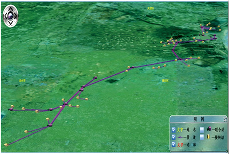 使用三維虛擬現(xiàn)實展示油田管網(wǎng)拓樸架構(gòu),在此基礎(chǔ)上實現(xiàn)了油氣管線狀態(tài)參數(shù)實時監(jiān)測。搭建了油氣管線數(shù)據(jù)開放平臺,在此基礎(chǔ)上可擴展其他應(yīng)用。通過對管線實時狀態(tài)參數(shù)的實測值和模擬計算的理論值對比分析,實現(xiàn)對管線的運行狀況多角度、全方位監(jiān)測,并通過預(yù)警、報警方法,實時監(jiān)測全管網(wǎng)的管線異常情況。